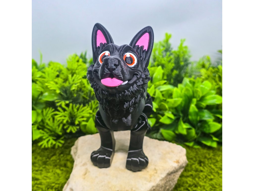 V tomto případě nabízíme plemeno německý ovčák, které je velmi oblíbené. Figurka je vyrobena barevnou variantou, která myslí i na takové detaily jako jsou jazyk a zuby. Detaily dobarvujeme ručně.