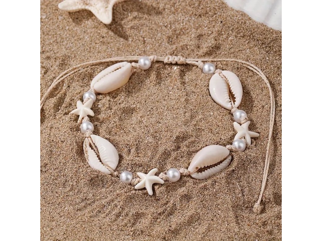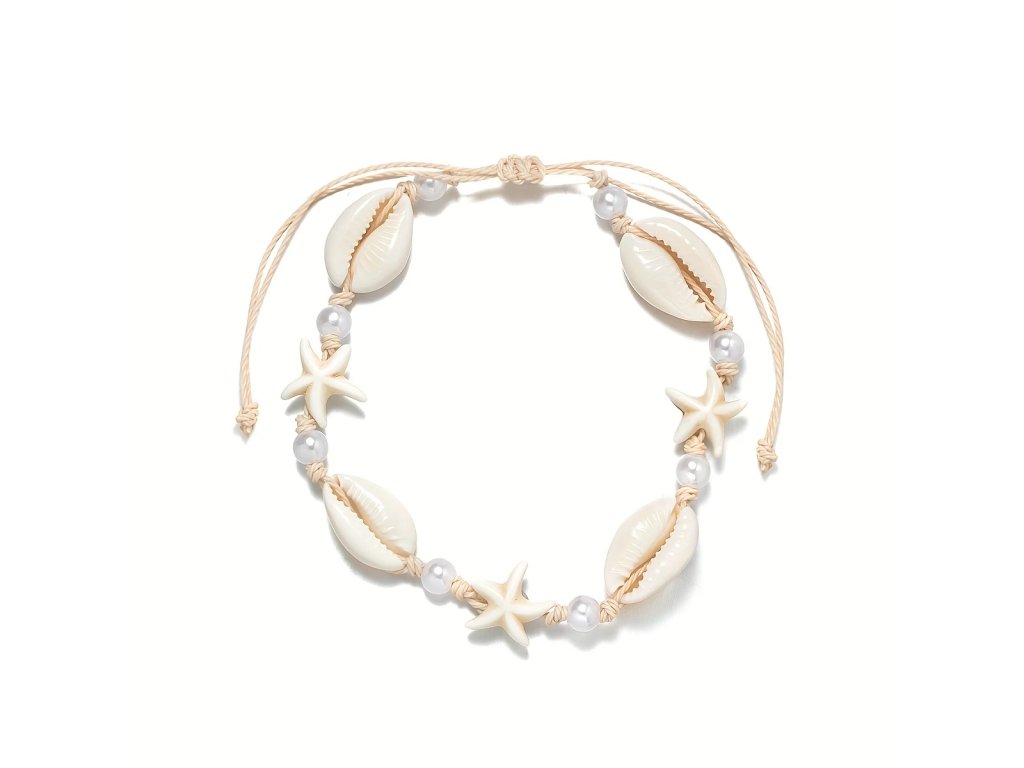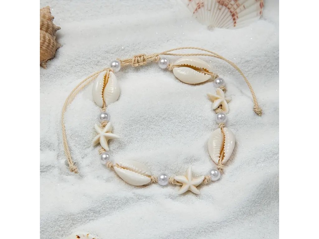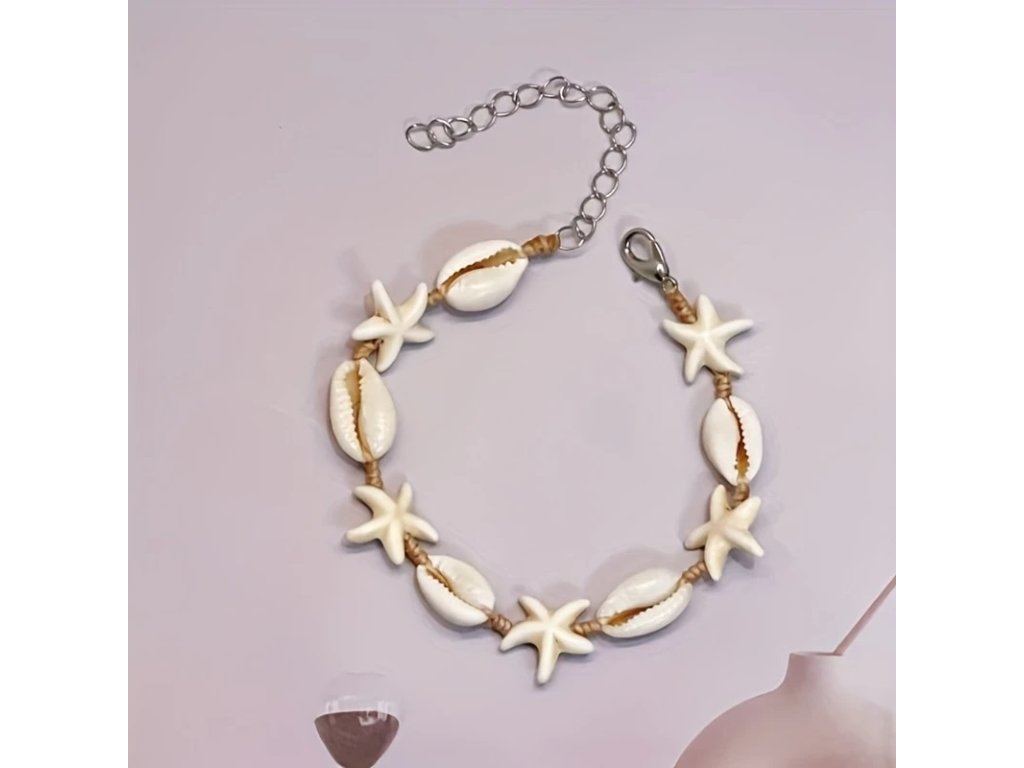 1. Zapínání náramku je posuvné, oba konce náramku procházejí středovým uzlem, který umožňuje utažení šňůrek pro Vaše pohodlí. Náramek obsahuje 4 mušle a 3 hvězdy. Tato varianta obsahuje navíc "perlové" korálky. Tento náramek lze použít i jako nákotník. Délka náramku je 17-30 cm.