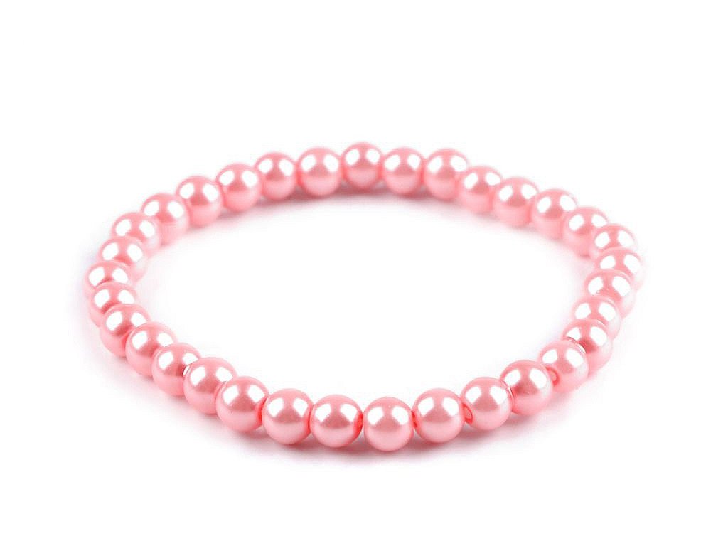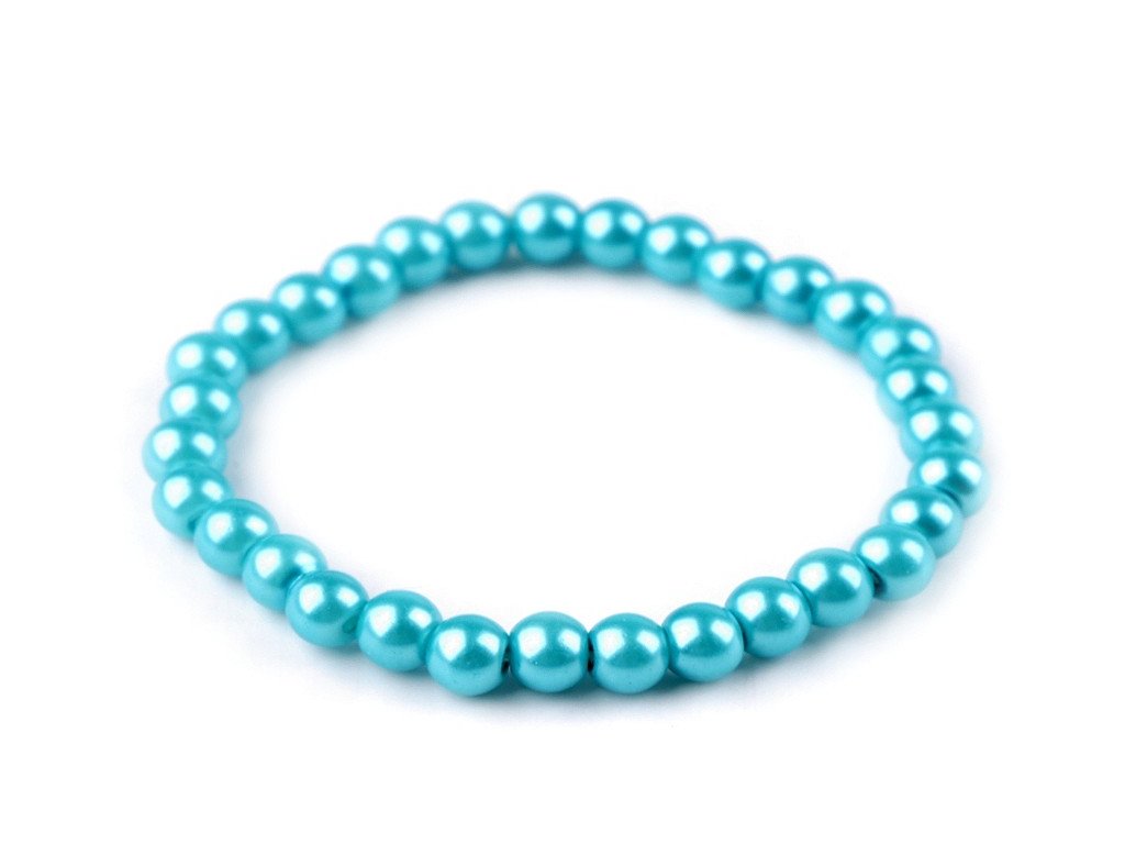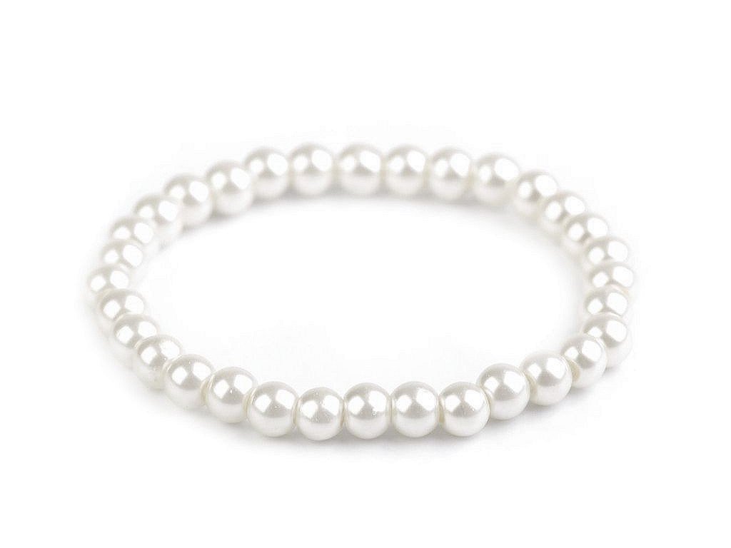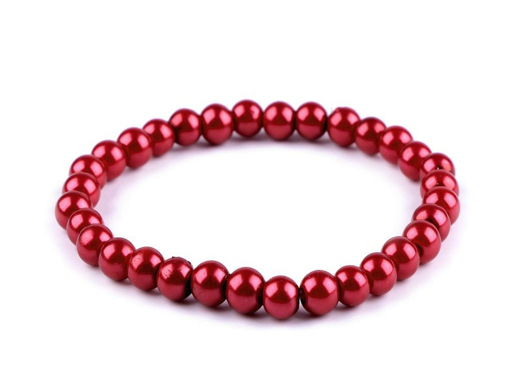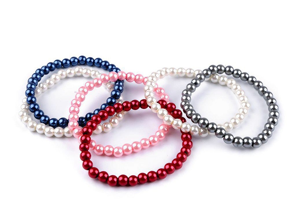 Náramek je ze skleněných povoskovaných korálků s perlovým leskem o průměru 6 mm. Pohodlně se navléká, má pružnou délku 16-18 cm.
